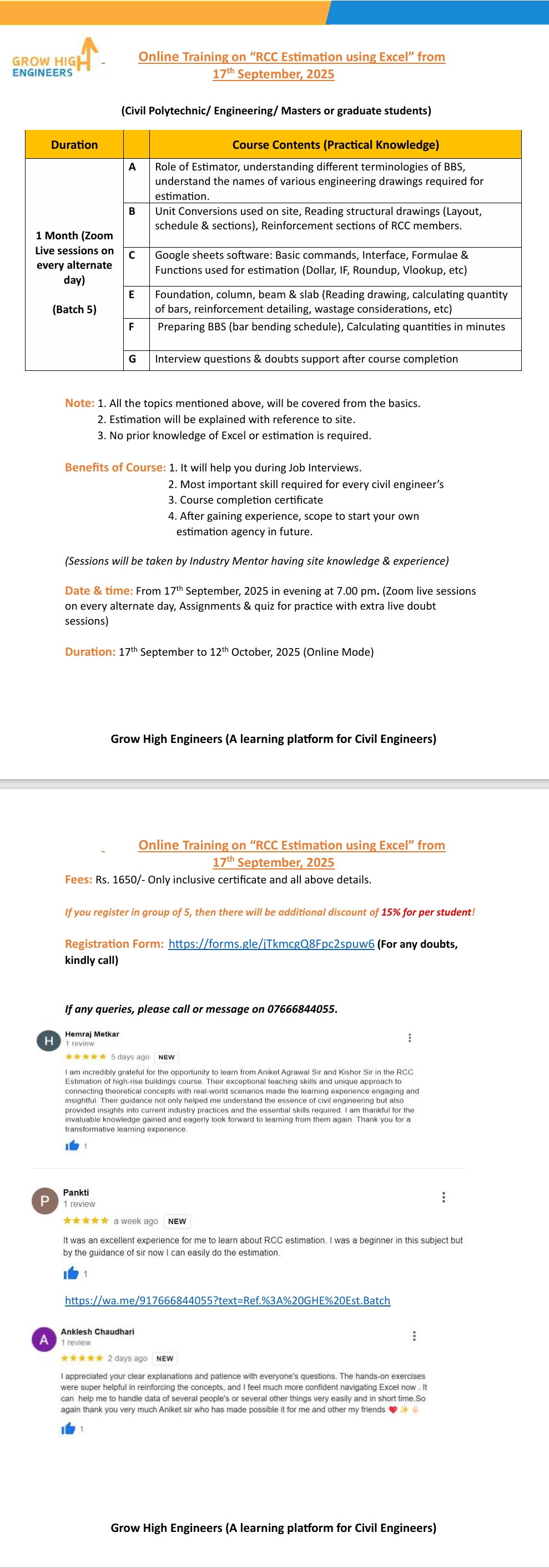 Grow High Engineers Civil Engineers stands at the forefront as a premier institute dedicated to shaping the future of civil engineering professionals. Specializing in comprehensive training programs, industry-focused workshops, and advanced technical courses, we empower aspiring engineers with the knowledge and skills they need to excel.